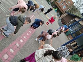 We deden 100 sportoefeningen: 10 keer 10 verschillende oefeningen.