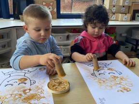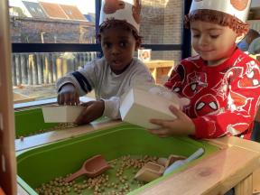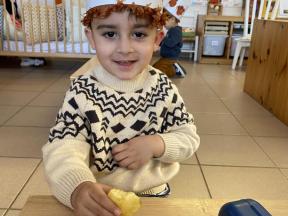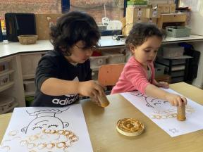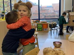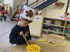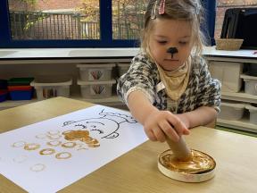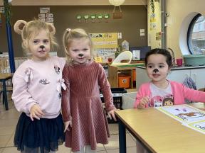 We schilderen de mooie krullen van Goudlokje, knippen en plakken de matrix en maken de allermooiste berenkronen! Zelfs onze neusjes zijn als echte beertjes.