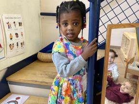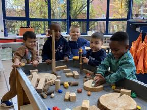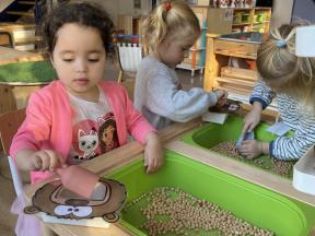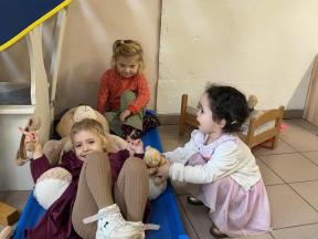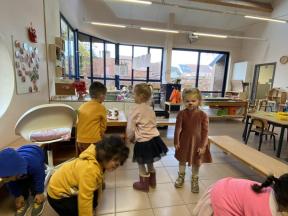 We lezen het boekje van Goudlokje en de drie beren. Wat een spannend verhaaltje zeg. We leren over groot, middelgroot en klein, hard en zacht.
