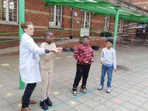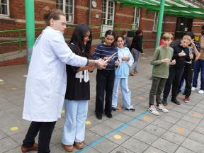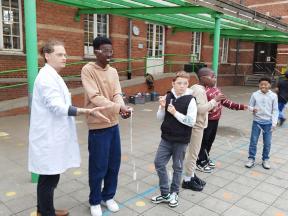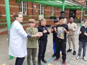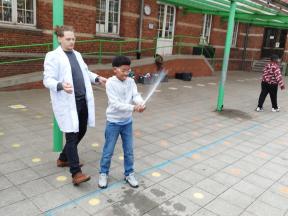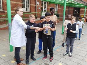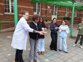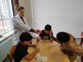 Mad Science We kregen een wetenschappelijke les over zuren en basen. We maakten zelf een ontploffende buisje.
