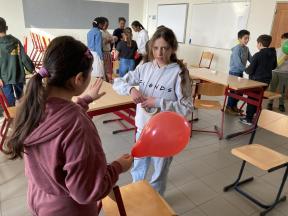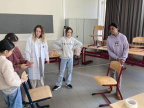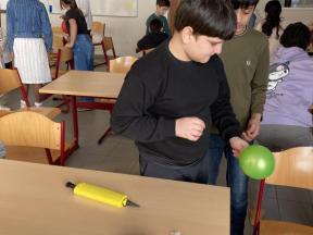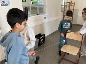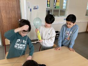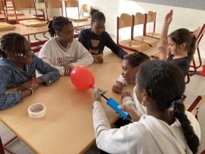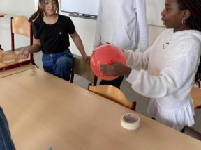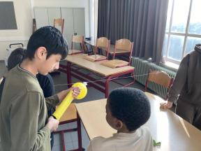 Mad Science - sessie 3 (aerodynamica) Tijdens de derde sessie van 'Mad Science' ontdekten de leerlingen waarom een raket bij lancering mooi stabiel omhoog gaat door de verschillende luchtlagen. Mad Science - sessie 3 (aerodynamica)