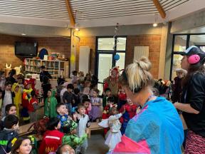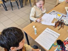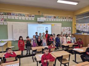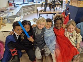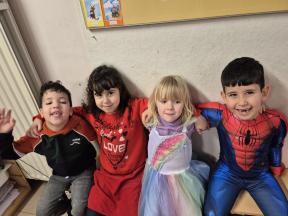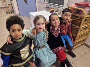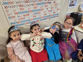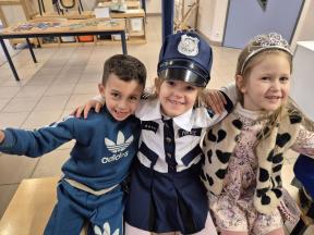 Feest! We vierden carnaval op school... met een playbackshow, chips, muziek en dans. We gingen ook op bezoek bij het eerste leerjaar. We toonden hen onze outfits en mochten al eens een kijkje nemen in de klassen.