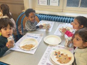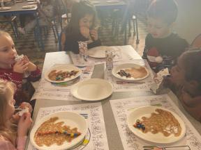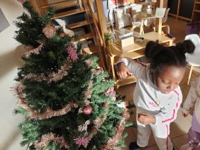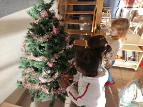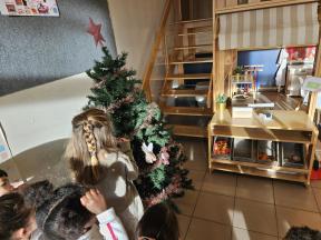 Een kerstplacemat kleuren, wat kerstmuziek op de achtergrond en kerstboompannenkoeken die we mochten versieren met bloemsuiker (sneeuw) en M&M's (kerstballen). Maar vooral: gezellig samen feest vieren! 🥰