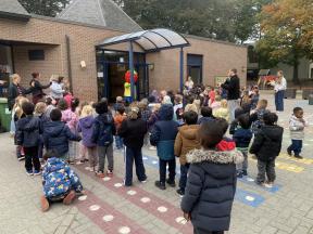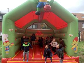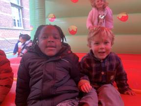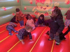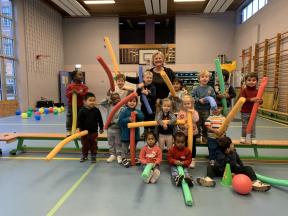 Sportdag Onder het motto "sporten is gezond" proberen we op onze school veel te bewegen en gezond te eten. Hopsabees kwam ons daarbij een dagje helpen!