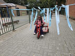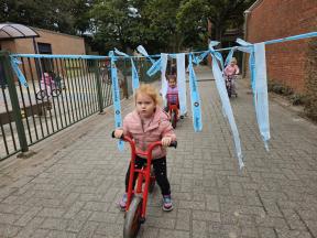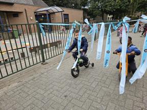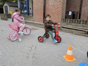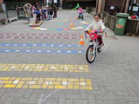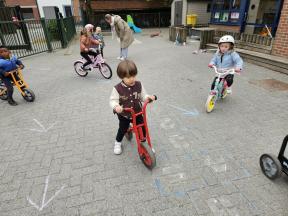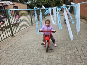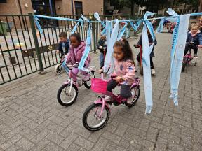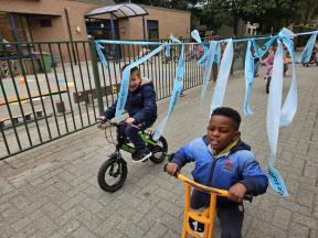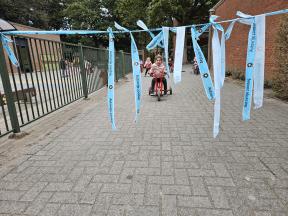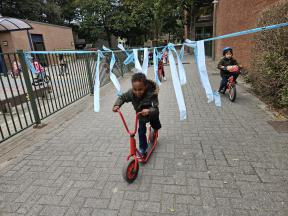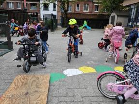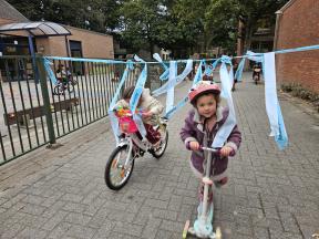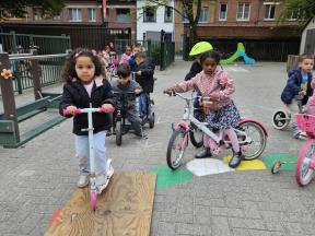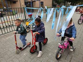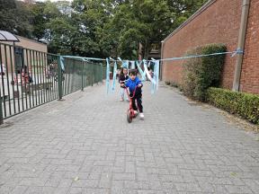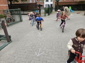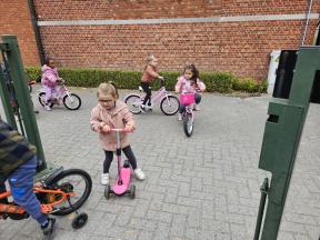 STRAPDAG 2025 De visjes en flamingo's gingen samen fietsen en steppen. Wat genoten ze van het parcours! 🚲🛴