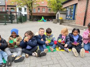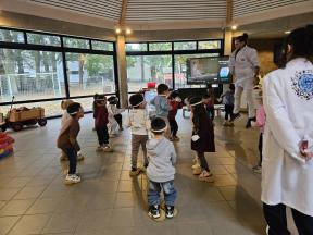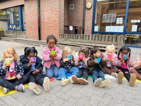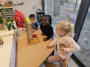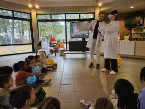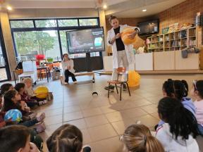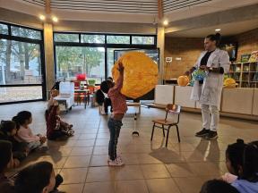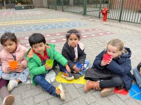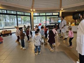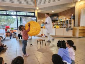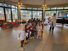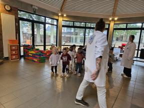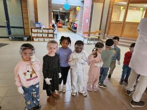 Enkele keren dit schooljaar komt de professor van mad science met onze kleuters wetenschappelijke spelletjes spelen.