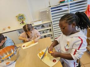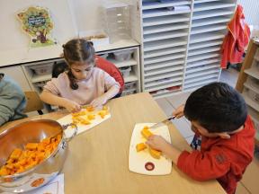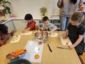 We deden een exploratie van verschillende soorten pompoenen. We kozen er eentje uit en deze gingen we ontleden. Nadien maakten we er lekkere soep van!
