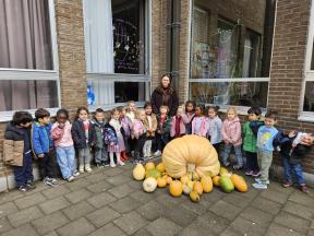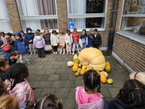 Een MEGAgrote pompoen op school! 🤩