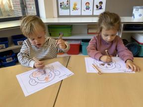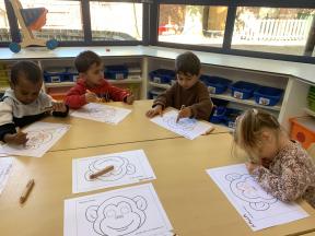Welkom in de apenklas De kleuters voelen zich al helemaal thuis in de apenklas. Enkele sfeerbeelden van de eerste maand ...