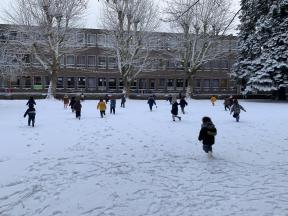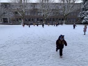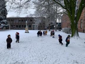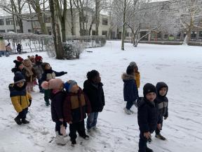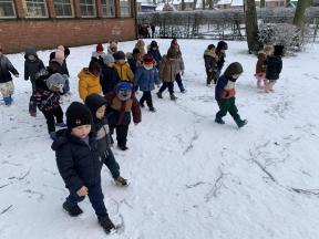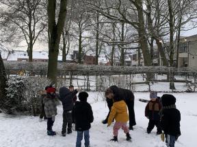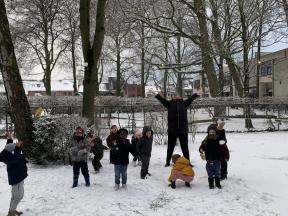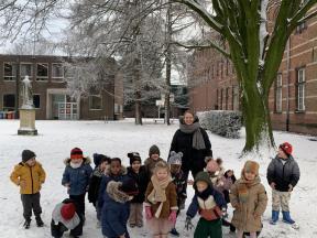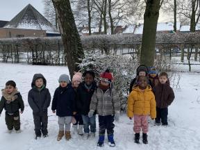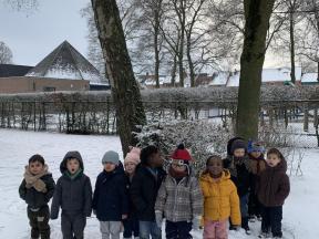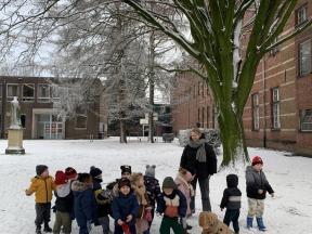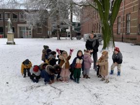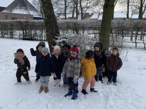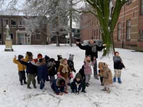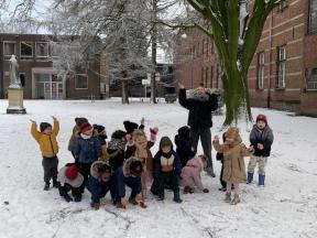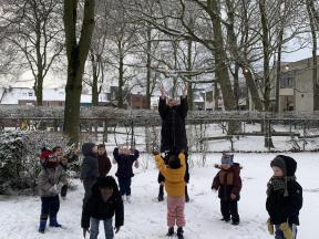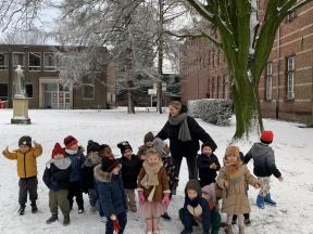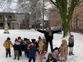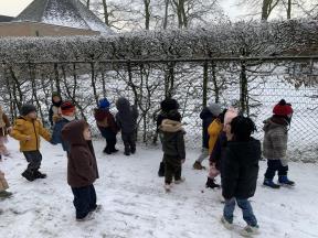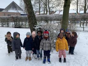 Winterpret De aapjes en de vosjes spelen samen in de sneeuw. We horen de sneeuw kraken onder onze voetjes, het is koud en glad, de bomen zien er supermooi uit. Zo leuk!