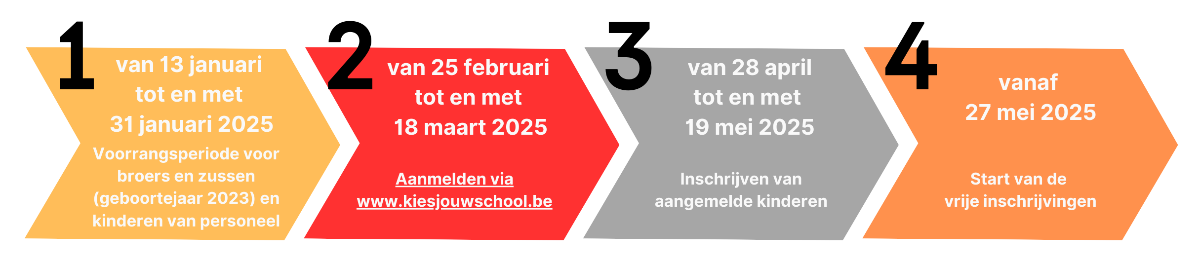 Meer informatie over de voorrangs- en aanmeldingsperiode vind je op www.kiesjouwschool.be
